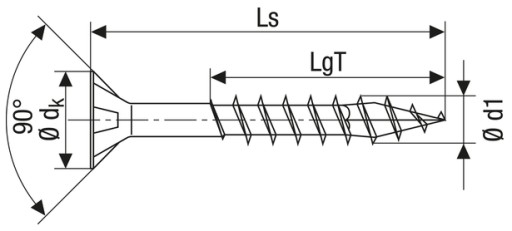 Długość całkowita Ls 55 mm, gwint częściowy LgT 35 mm, gniazdo Z2, ilość szt. w opak. 500