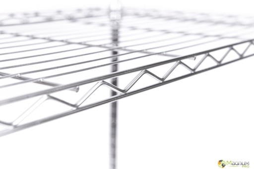 Profesjonalny regał magazynowy idealnie sprawuje się w stołówkach, szpitalach, profesjonalnych kuchniach. Chromowana stal chroni stal przed korozją oraz ułatwia utrzymanie regału w należytej czystości. Mebel spełnia wymagania zawarte w normie EN 16121.