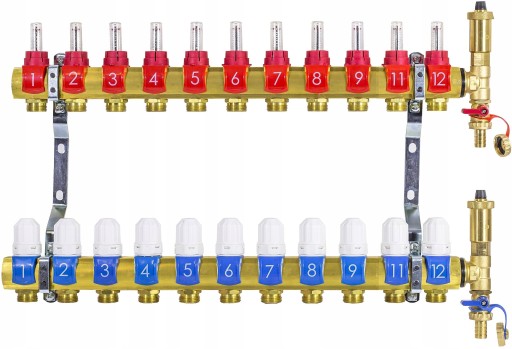 Rozdzielacz 12-obwodowy na profilu mosiężnym 1”