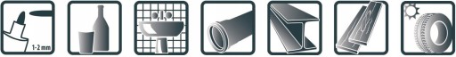 Idealny do suchej gumy, drewna, metalu, plastiku, tworzywa sztucznego, skóry, ceramiki, glazury, szkła, czy laminatu.