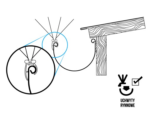 Użycie uchwytów rynnowych pozwala na montaż tradycyjnych kolców na ptaki w miejscach, w których użycie kleju silikonowego oraz wkrętów jest niemożliwe.