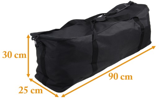 Torba posiada jedna główną komorę zapinaną na suwak, dwa paski umożliwiające przenoszenie oraz jeden długi pasek do noszenia na ramieniu. Torba nie jest usztywniana. Zaczepy paska są plastikowe. Jeśli szukasz rozwiązania, które umożliwi Ci przechowywanie statywów czy parasolek - ta torba będzie satysfakcjonującym rozwiązaniem w przystępnej cenie. Jeśli potrzebujesz torby do lamp studyjnych, polecamy inne torby na naszych aukcjach. Torba jest naprawdę duża, dzięki czemu zmieści się w niej dużo statywów i parasolek.