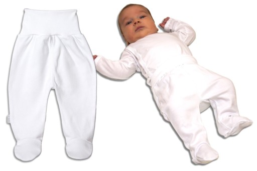 Przedmiotem sprzedaży są bawełniane pół śpioszki białe bez uciskowe w rozmiarze