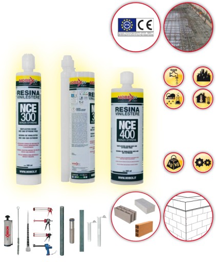 Żywica iniekcyjna NCE V-ECO to wysokiej jakości wolna od styrenu, żywica vinylestrowa przeznaczona głównie do w materiałach pełnych jak beton, kamień naturalny, gazobeton, ale również można ją stosować w materiałach z pustką przestrzenną jak cegła dziurawka, pustaki cegła pełna.