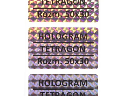 Oferujemy wykonanie 250 sztuk plomb gwarancyjnych w rozmiarze 50x30mm, z materiału HOLOGRAM TETRAGON.