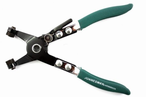 Szczypce przeznaczone do opasek samozaciskowych o płaskim przekroju stosowanych w obwodach chłodzenia. Posiadają okrągłe, ponacinane, obrotowe końcówki szczęk oraz mechanizm automatycznie je blokujący w położeniu zamkniętym.