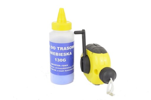 - Sznurek traserski w plastikowej obudowie wykorzystywany do wyznaczania prostych linii na ścianie lub innym podłożu,