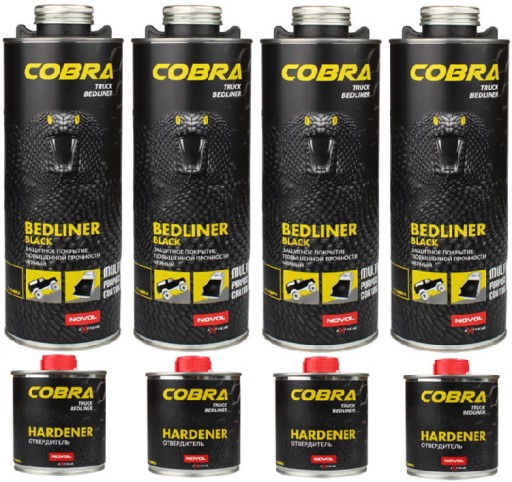 COBRA Truck Bedliner to powłoka ochronna z efektem strukturalnym na bazie żywic poliuretanowych 2K. Charakteryzuje się bardzo wysoką wytrzymałością mechaniczną i jest odporna na zarysowania. Zabezpiecza przed wpływem czynników atmosferycznych, benzyną, olejami, wodą i solą. Posiada właściwości dźwiękochłonne i wygłuszające. Struktura powierzchni nadaje efekt antypoślizgowy. W wersji standardowej występuje w kolorze czarnym, w wersji do barwienia pozwala na uzyskanie dowolnego koloru przez dodanie 10-15% farby akrylowej lub bazowej (zalecamy użycie SPECTRAL 2K lub SPECTRAL BASE).