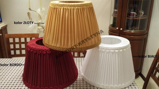 W naszej ofercie znajdują się abażury z tej kolekcji z różnych rozmiarach - do lamp podłogowych, nocnych, kinkietów, żyrandoli oraz do lamp wiszących montowanych do sufitu.