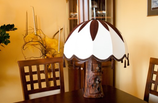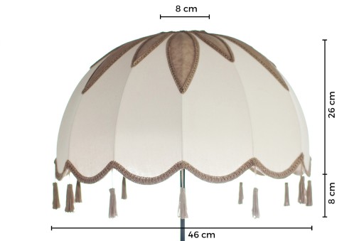 Każdy abażur jest ręcznie produkowany i szyty przez naszą firmę. Stelaż abażura wykonany jest z metalu i lakierowany proszkowo.