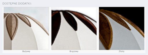 W naszej ofercie znajdują się abażury z tej kolekcji z różnych rozmiarach - do lamp podłogowych, nocnych, kinkietów, żyrandoli oraz do lamp wiszących montowanych do sufitu.