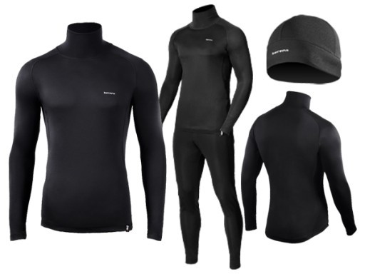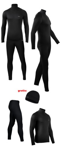 Komplet bielizny termoaktywnej: koszulka z długim rękawem + legginsy - rewelacyjny czas schnięcia i znakomita oddychalność oraz ochrona szyi dzięki wysokiemu golfowi: