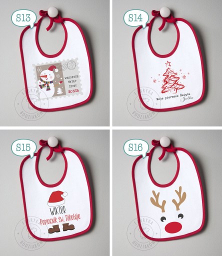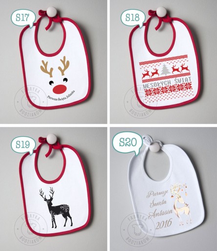 Przedmiotem sprzedaży jest bawełniany śliniak ozdobiony świątecznym nadrukiem.