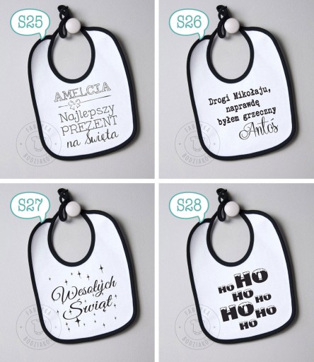 - Poniżej przedstawiamy propozycje naszych nadruków, a jeśli mają Państwo pomysł na własny śliniak zapraszamy na inną naszą aukcję śliniaków z indywidualnym nadrukiem, na której wykonamy dla Państwa projekt nadruku zgodnie z Państwa wytycznymi.