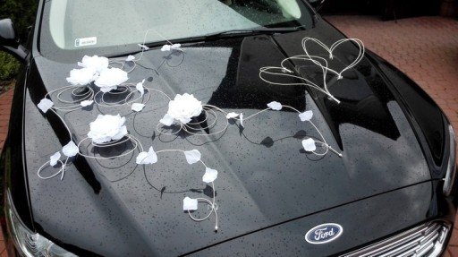 Delikatna i subtelna dekoracja na samochód do ślubu.