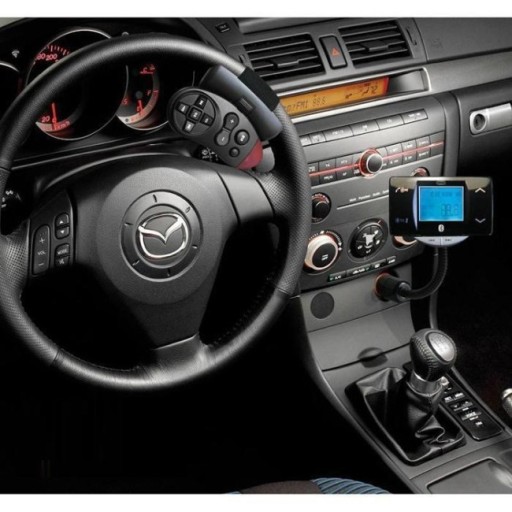 TRANSMITER FM Z CZYTNIKIEM KART SD/SDHC, OBSŁUGĄ PEN-DRIVE i WBUDOWANYM ZESTAWEM GŁOŚNOMÓWIĄCYM , Z REGULOWANYM WYSIĘGNIKIEM + PILOT NA KIEROWNICE