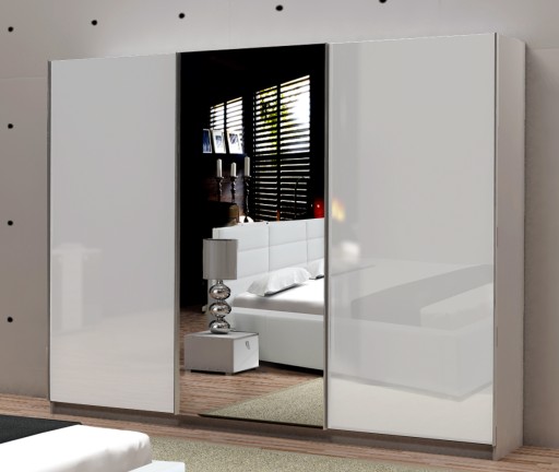 БЕЛЫЙ ГЛЯНЦЕВЫЙ ШКАФ С ЗЕРКАЛОМ, ШИРИНА 270 СМ