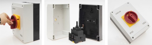 Przełącznik są zamontowane w poliwęglanowej obudowie. Obudowa posiada stopień ochrony IP 65, dzięki czemu nadaje się do stosowania na zewnątrz.
