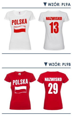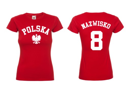 Koszulki kibica krój damski z dowolnym nazwiskiem, imieniem, ksywą i numerem - t-shirt na mecz reprezentacji polski.