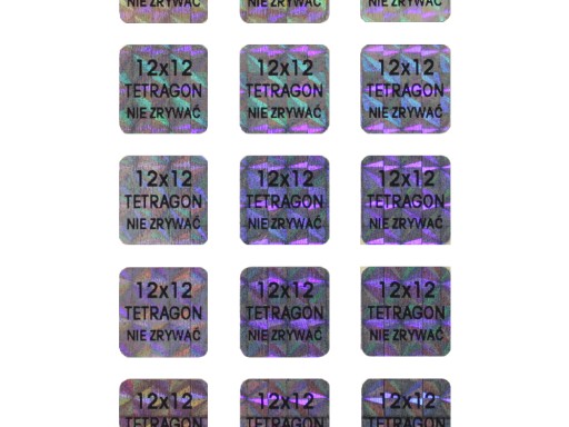 Oferujemy wykonanie 1000 sztuk plomb gwarancyjnych w rozmiarze 12x12mm z materiału HOLOGRAM TETRAGON.