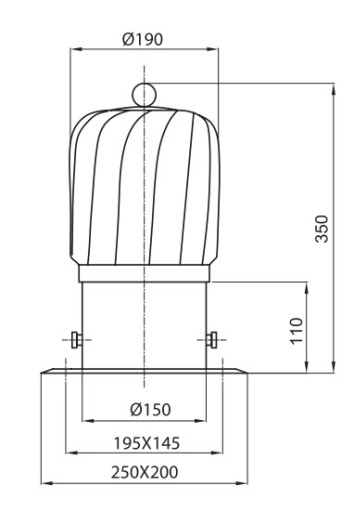 Поворотный продольный колпак для дымохода KWAS с POD FI150
