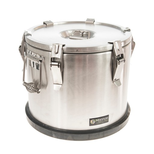 Profesjonalny gastronomiczny termos do przechowywania i transportowania żywności. Wykonany ze stali nierdzewnej z możliwością układania kilku termosów pionowo (piętrowanie). Tego typu termosy znajdują najczęściej zastosowanie w firmach kateringowych oraz na weselach, przyjęciach ślubnych i innych imprezach okolicznościowych czy firmowych.
