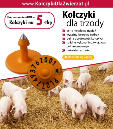 - kolczyki dla trzody wykonane z najwyższej jakości materiałów zgodne z wzorem ARiMR