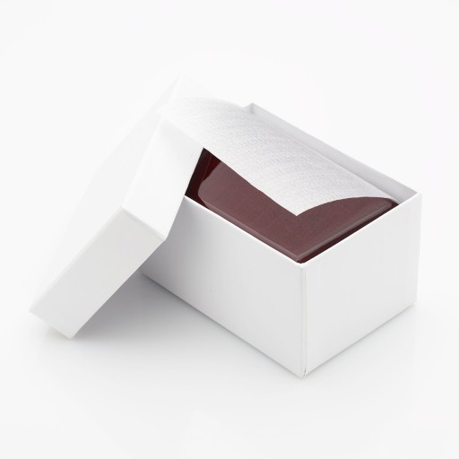 Drewniane, okazałe pudełko na obrączki, pierścionek lub spinki męskie. Pudełko jest lakierowane na kolor ciemno-wiśniowy. Środek z pięknej, białej ekoskórki. Wymiary szer. 87mm, wys. 48mm, dł. 60mm.
