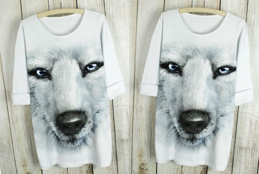 Przedmiotem aukcji jest fajny biały t-shirt tudzież tunika z printem wilka, z tyłu gładka. - MEGA MODNY WZÓR !