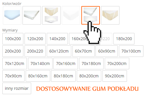 Aby ułatwić Państwu poruszanie się po naszej ofercie, połączyliśmy nasze aukcje w ofertę wielowariantową. Po kliknięciu wybranej ikony z sekcji KOLOR/WZÓR znajdującej się w prawej górnej części aukcji zostaną Państwo przekierowani na wybrany rodzaj/gramaturę ochraniaczy lub prześcieradeł nieprzemakalnych.