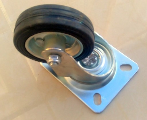 Koła skrętne mocowane na tzw. płytkę są połączeniem widelca wykonanego z tłoczonej blachy stalowej oraz koła z piastą stalową i oponką z pełnej, czarnej gumy. Głowica skrętna widelca jest podwójnie ułożyskowana oraz jest zabezpieczona przed zabrudzeniem specjalnym uszczelnieniem przeciwpyłowym. Wszystkie elementy metalowe zestawu pokryte są antykorozyjną powłoką chromowo-cynkową.