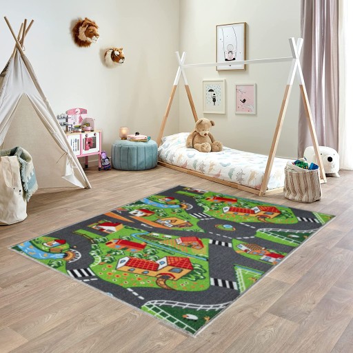 Wspaniały dywan do pokoju dziecięcego, przedszkola i szkoły. Idealny do urządzania ciekawej zabawy na podłodze. Żywe kolory i ciekawy wzór dywanika.