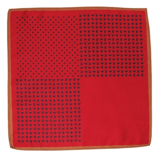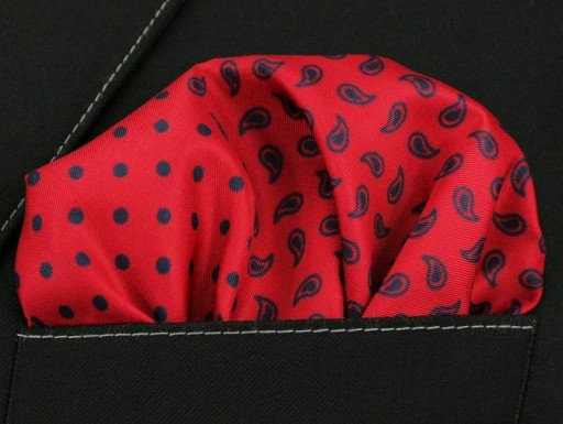 Wyrazista, Czerwona Poszetka Męska - Paisley, w Groszki, Kropki, Poczwórna