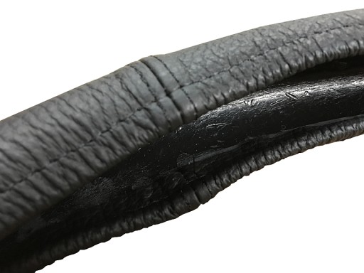 Pokrowiec od wewnętrznej strony wzmocniony mieszanką gumy, która zapobiega przesuwaniu się pokrowca na kierownicy.