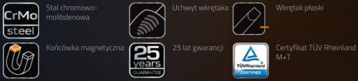 Grot wkrętaka wykonany jest z wyjątkowo wytrzymałej stali S2.