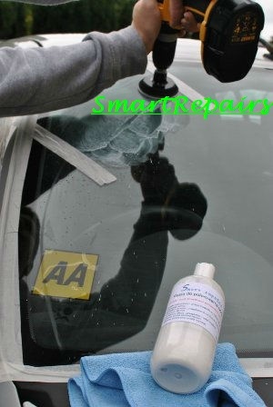 Zestaw do usuwania płytkich rys z powierzchni szklanej.