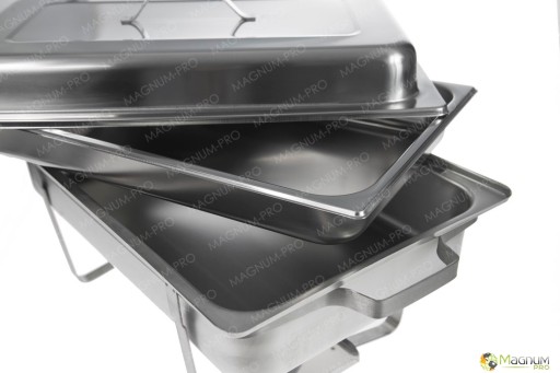 Zestaw zawiera pojemnik GN 1/1 o głębokości 65 mm, oraz pokrywę, która zatrzymuję ciepło i chroni potrawy przed dostaniem się zanieczyszczeń z zewnątrz. Istnieje również możliwość ustawienia pokrywy w pozycji półotwartej.