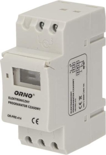 Programator z wyświetlaczem LCD przeznaczony do montażu na standardowej szynie DIN. Służy do ustawiania czasu włączania i wyłączania urządzeń elektrycznych takich jak: oświetlenie, ogrzewacze wody, silniki, pompy itp. Urządzenie posiada: