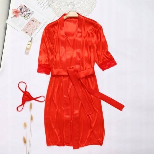 ❤️NIEZWYKLE ZMYSŁOWY SZLAFROCZEK Z KORONKOWYMI ZAKOŃCZENIAMI RĘKAWÓW, ORAZ TASIEMKĄ DO PRZEWIĄZYWANIA❤️
