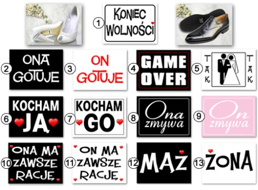 Państwo Młodzi mogą sami sobie przykleić naklejki lub tak to zrobić, aby wzajemnie o tym nie wiedzieli.