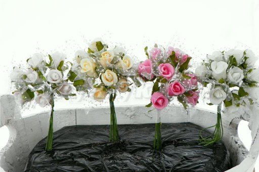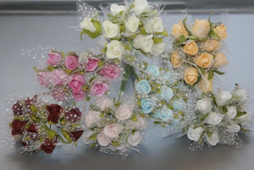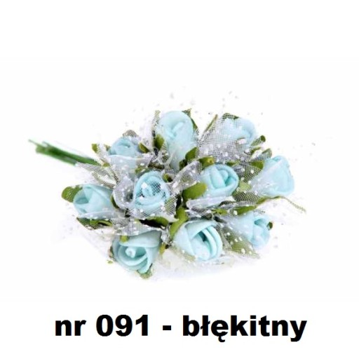 Kwiaty róży z pianki z tiulem. 1 komplet = 10 kwiatków(jednego koloru). Symbol: OZDL-M13.