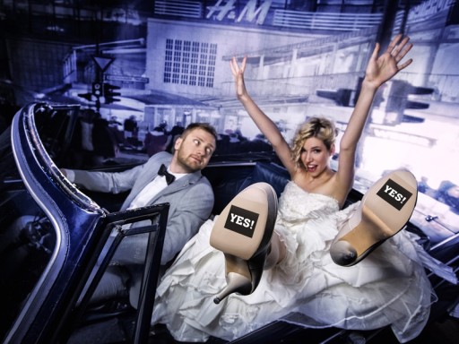 Zabawne naklejki samoprzylepne na podeszwy butów Młodej Pary. Profesjonalny druk offsetowy gwarantuje, że nadruk nie rozmaże się pod wpływem wilgoc