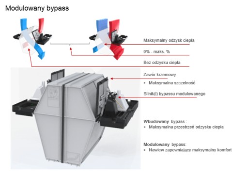 - wymiennik przeciwprądowy o sprawności 90-94% (w zależności od modelu)