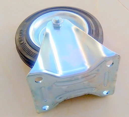 Koła mocowane na tzw. płytkę są połączeniem widelca wykonanego z tłoczonej blachy stalowej oraz koła z piastą stalową i oponką z pełnej, czarnej gumy. Głowica skrętna widelca jest podwójnie ułożyskowana oraz jest zabezpieczona przed zabrudzeniem specjalnym uszczelnieniem przeciwpyłowym. Wszystkie elementy metalowe zestawu pokryte są antykorozyjną powłoką chromowo-cynkową. Hamulec blokuje koło i głowicę.