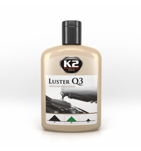 K2 LUSTER Q3 ZIELONY to pasta do maszynowego polerowania lakieru. Usuwa rysy po papierze ściernym, myjniach automatycznych, zmatowienia, skórkę pomarańczową, oksydację, hologramy, przebarwienia. Doskonale nadaje się do polerowanie świeżo nałożonych lakierów oraz do renowacji starych, zniszczonych powłok. Wytwarza mało ciepła podczas pracy, przez co nie przegrzewa powierzchni. Daje doskonałe efekty podczas stosowania w tzw. jednym kroku - tj. 1 cykl polerowania z 1 gąbką. W większości przypadków nie są potrzebne żadne dodatkowe czynności. Przeznaczona do polerowania: lakierów samochodowych wszelkiego rodzaju, lakierów przemysłowych, reflektorów, celulozy, mebli, powierzchni syntetycznych, akryli i wielu innych.