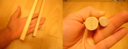 Po lewej solidne tralki Naszej produkcji, po prawej cieniutkie tralki 16mm.