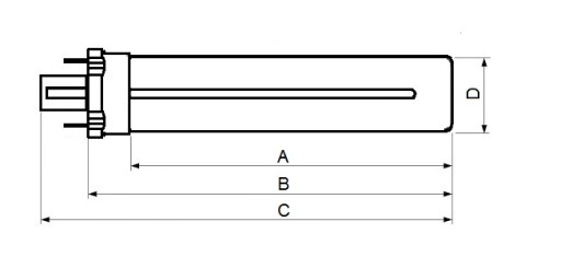 - B - dł. widoczna lampy (bez pinów) ok. 209 mm