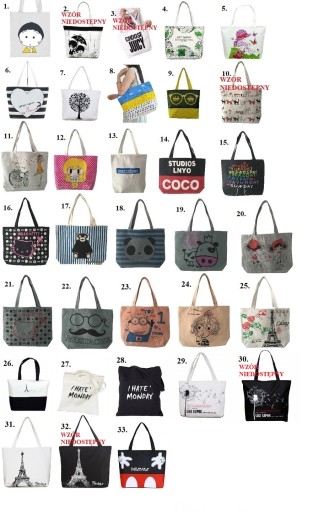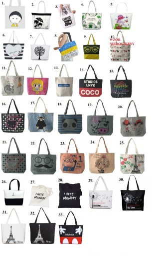 DUŻA MATERIAŁOWA TORBA SHOPPER BAG NADRUK WZORY