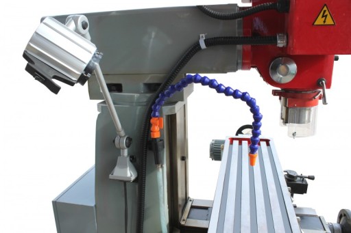 Wykonanie w odlewie, ciężkie i absorbujące wibracje, wytrzymała i odchylana (+90ş -90ş) pionowa głowica frezowa z przekładnią, przekładnia olejowa ze szlifowanymi i hartowanymi kołami przekładni, obroty w lewą stronę i w prawą stronę w wyposażeniu standardowym, możliwość gwintowania otworów maksymalnie do M16, dosuw tulei wrzecionowej poprzez trójramienną dźwignię i precyzyjne koło ręczne z podziałką głębokości, masywny i duży stół krzyżowy z rowkami teowymi 14 mm dla mocowania imadła itp., automatyczny posuw osi X z regulacją prędkości za pomocą przekładni zębatej, nastawne automatyczne wyłączniki krańcowe na osi X, prowadnice stołu o przekroju w kształcie jaskółczego ogona regulowane poprzez listwy klinowe, przestawne ograniczniki na wszystkich osiach, system chłodzenia i lampa halogenowa w komplecie.