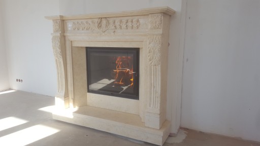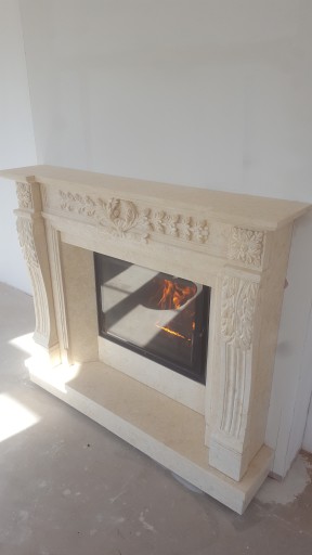 Przedmiotem aukcji jest ręcznie rzeźbiona obudowa kominkowa wykonana z marmuru.